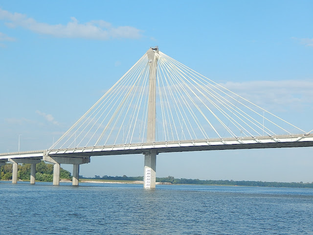 One of the new dams being built - and not soon enough! One of the dams it is replacing is having serious problems and has been closed to barge traffic for many days. We were one of the last pleasure boats (if not the last - we are waiting to hear if one more got through the next day) to clear the old lock. I don't think I've ever seen 1) a dam being built, and 2) so many cranes in one place!